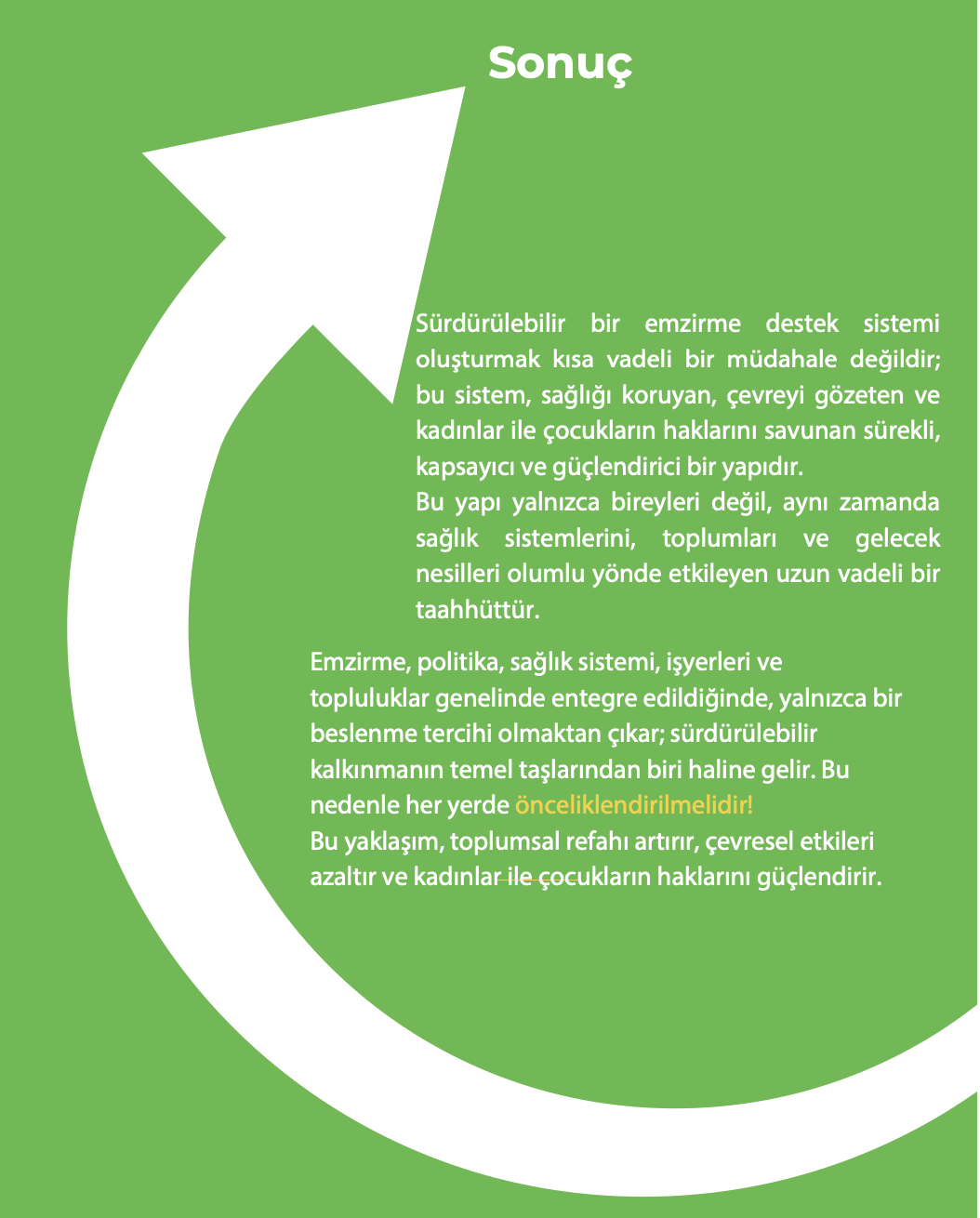 Emzirmenin yalnızca bebeklerin sağlıklı büyümesi için değil; annelerin sağlığı, aile ekonomisi, çevrenin korunması ve toplumsal eşitlik için de hayati öneme sahip olduğuna inanıyoruz.